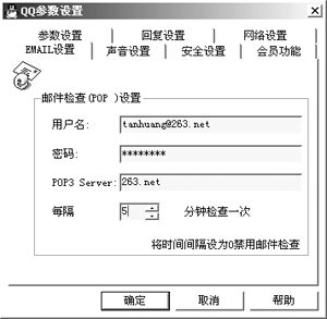 IM和E-mail是我們?cè)诰W(wǎng)上最常用的兩種工具,如今不少IM軟件將兩者作了完美的結(jié)合。在QQ中你可以直接給自己的好友發(fā)郵件,而無須再輸入E-mail地址;此外對(duì)于自己的信箱QQ還有檢查新郵件功能,在“系統(tǒng)參數(shù)”中設(shè)置您自己的E-mail,填好POP3地址,您可以選擇定時(shí)檢查時(shí)間,QQ就會(huì)自動(dòng)檢查有否新郵件到達(dá)。對(duì)于MSN Messenger來說它的郵件功能就更強(qiáng)大了,使用MSN Messenger你必須有一個(gè)郵件賬號(hào),每次當(dāng)您的MSN Messenger登錄成功時(shí),在右下角自動(dòng)彈出一個(gè)窗口,里面寫有該E-mail賬戶內(nèi)的信件狀況,在使用過程中如果您的郵箱中有了新郵件,馬上會(huì)冒出一個(gè)提示窗。