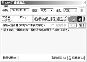 目前IM與各種移動(dòng)終端設(shè)備的結(jié)合也越來越多。使用QQ向手機(jī)發(fā)送短信需要手機(jī)開通移動(dòng)QQ服務(wù),單擊對(duì)方頭像圖標(biāo),在打開的快捷菜單中選擇“手機(jī)短訊”命令,在打開的對(duì)話框中輸入信息,然后點(diǎn)擊發(fā)送即可完成,這時(shí)對(duì)方的手機(jī)就可以收到一個(gè)消息。給BP機(jī)發(fā)短訊也是一樣,不過對(duì)方的BP機(jī)服務(wù)臺(tái)必須是QQ所支持的情況下才行。當(dāng)對(duì)方的手機(jī)收到你發(fā)來的短信后還可以回復(fù),這時(shí)候您的QQ會(huì)彈出“查看手機(jī)短訊”的窗口來,非常方便。