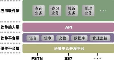 2.系統(tǒng)建設(shè)周期較短,功能擴(kuò)展性強(qiáng)——語音卡方案的主要功能都由軟件編程實(shí)現(xiàn)。國內(nèi)一些語音卡方面的軟件開發(fā)商已經(jīng)積累了語音接續(xù)、排隊(duì)分發(fā)、撥內(nèi)外線、電話會議、文本傳真轉(zhuǎn)換、文本語音轉(zhuǎn)換等功能模塊,通過簡單組合10種符合國際規(guī)范的模塊,就可以開發(fā)出滿足用戶需求的各種應(yīng)用系統(tǒng)。基于同樣原因,系統(tǒng)開發(fā)新功能也較為容易。