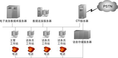 CTI服務(wù)器是一臺與交換機(jī)相聯(lián)、通常內(nèi)插CTI板卡的計(jì)算機(jī),它通過接收來自交換機(jī)的事件/狀態(tài)消息和向交換機(jī)發(fā)送命令,實(shí)現(xiàn)計(jì)算機(jī)對整個呼叫中心的全面管理。同時,CTI服務(wù)器屏蔽了交換機(jī)與計(jì)算機(jī)之間復(fù)雜的通信協(xié)議,向上提供統(tǒng)一的編程接口,使開發(fā)人員能方便地開發(fā)呼叫中心的各類應(yīng)用。CTI服務(wù)器一般由電話服務(wù)單元、安全數(shù)據(jù)庫和電話服務(wù)庫等組成,實(shí)現(xiàn)同步語音與數(shù)據(jù)的傳送、協(xié)調(diào)語音與數(shù)據(jù)的轉(zhuǎn)移、智能路由等功能。
