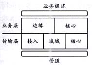 業(yè)務(wù)層的基本功能是在由傳送層提供的“電路”中把負荷進行“整形”并進行信息的交換,其目標(biāo)是提升每一個比特的價值。業(yè)務(wù)層被橫切為邊緣和核心兩大部分,界線是10萬分組/s。在業(yè)務(wù)層,數(shù)據(jù)分組被單獨處理或者作為“流”(與特定用戶或應(yīng)用相關(guān)的分組串)來處理,老的技術(shù)包括幀中繼和ATM,新的技術(shù)MPLS有可能成為ATM的替代技術(shù)。