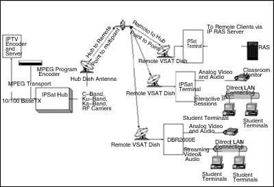 中國衛(wèi)通的“衛(wèi)星寬帶視頻會(huì)議系統(tǒng)”是一個(gè)典型的IPSat系統(tǒng),由一個(gè)發(fā)送高速上行廣播的主站和使用IPSat終端的多個(gè)遠(yuǎn)端站構(gòu)成。