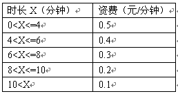 例2,區(qū)間話費(fèi)在時長不超過4分鐘的情況下,按0.5元/分鐘收;超過4分鐘但不超過6分鐘,其超過部分按0.4元/分鐘收;超過6分鐘但不超過8分鐘,其超過部分按0.3元/分鐘收。怀^8分鐘但不超過10分鐘,其超過部分按0.2元/分鐘收取;超過10分鐘,其超過部分按0.1元/分鐘收取。