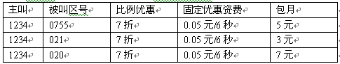 ·主被叫號碼頭關(guān)系優(yōu)惠