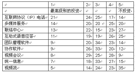 許多早期接受融合網(wǎng)絡(luò)的主要?jiǎng)右蚴菫榱藴p少語(yǔ)音成本。語(yǔ)音電話(VOIP)技術(shù)使融合網(wǎng)絡(luò)環(huán)境中的這一切都成為可能。語(yǔ)音電話實(shí)現(xiàn)了互聯(lián)網(wǎng)上的呼叫路由,繞過(guò)公共交換電話網(wǎng)絡(luò)(PSTN)進(jìn)行傳輸,從而避免了昂貴的費(fèi)用。我們的調(diào)查顯示,大部分公司將會(huì)在中短期內(nèi)把投資重點(diǎn)集中在融合網(wǎng)絡(luò)應(yīng)用上。