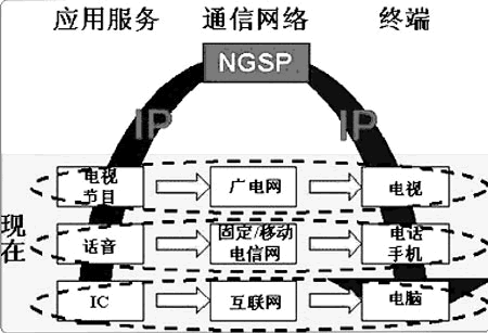 完全融合方式 完全融合的典型技術(shù)解決方案是目前業(yè)界普遍關(guān)注的焦點(diǎn)—NGN(下一代網(wǎng)絡(luò))。NGN的核心思路是重新生產(chǎn)和建立符合標(biāo)準(zhǔn)的服務(wù)、網(wǎng)絡(luò)和終端,徹底取代原有相對(duì)獨(dú)立的應(yīng)用服務(wù)、通信網(wǎng)絡(luò)和終端。由于技術(shù)標(biāo)準(zhǔn)制定復(fù)雜,網(wǎng)絡(luò)設(shè)備投資巨大,實(shí)施周期過長(zhǎng)等因素,實(shí)現(xiàn)起來(lái)困難較大。
