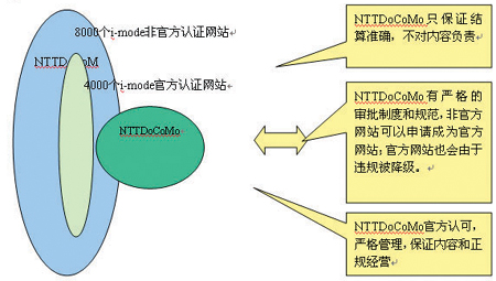 要解決上述問(wèn)題需要一個(gè)系統(tǒng)化的進(jìn)程,我們可以借鑒NTT DoCoMo的i-mode的管理模式,如圖5所示,這種管理模式的核心思路是將SP分成官方和非官方分別管理,并建立升降級(jí)制度,鼓勵(lì)SP升級(jí)。這樣做的好處是:1.明確運(yùn)營(yíng)商與SP的關(guān)系;2. 明確用戶(hù)投訴的對(duì)象;3. 降低SP進(jìn)入門(mén)檻,鼓勵(lì)SP開(kāi)發(fā)業(yè)務(wù)。