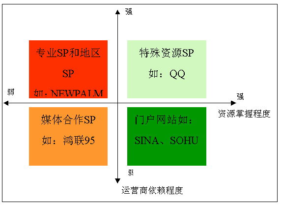 通常有風(fēng)險資本注入,主要通過本地接入獲得運營商推廣支持而產(chǎn)生收入,大多具20個省以上短信接入并在當(dāng)?shù)卦O(shè)有市場人員,其它地區(qū)采用全網(wǎng)接入發(fā)展業(yè)務(wù),與運營商關(guān)系密切,業(yè)務(wù)主要以娛樂服務(wù)為主:華友、掌中萬維、靈通、空中網(wǎng);