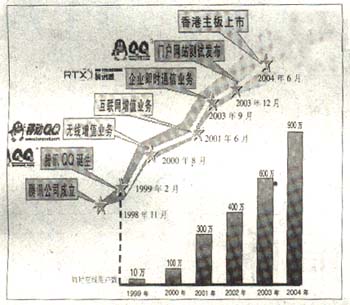 正是憑借著這些優(yōu)勢(shì),即時(shí)通信吸引聚集著一些忠誠(chéng)用戶,并開始搭建網(wǎng)絡(luò)廣告、無(wú)線增值等一系列各種潛在的交易平臺(tái)?梢韵胂螅粋(gè)絕佳的聊天窗口同時(shí)也是一個(gè)方便的交易窗口和暢通的付費(fèi)入口,即時(shí)通信正在摸索一條前所未有的盈利模式。有專家指出,經(jīng)過(guò)近5年的曲折前行,即時(shí)通信的盈利模式將在2005年逐步明確。以騰訊QQ為例,我們來(lái)剖析一下即時(shí)通信的盈利模式是如何由模糊走向清晰的。從1999年2月QQ發(fā)布到2000年5月,QQ迅速聚攏了10萬(wàn)用戶。2000年8月,騰訊公司同廣東移動(dòng)合作,僅僅用了一年就扭虧為盈,實(shí)現(xiàn)了1000萬(wàn)人民幣的純利潤(rùn)。