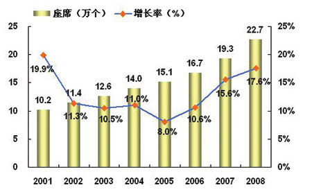 計世資訊(CCW Research)預測:從2006年開始,中國呼叫中心市場將進入第二個高速發(fā)展期。這是因為在大型企業(yè)用戶呼叫中心應用的帶動下,呼叫中心的中小型企業(yè)市場逐漸成熟,需求將快速增長,從而帶動中國呼叫中心市場增速從2005年的8%快速攀升到2008年的17.6%。特別是由于2008年北京奧運會和2010年上海世界博覽會的召開,從經濟、旅游、文化交流等方面為全社會帶來的巨大的拉動力量。
