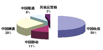 2005年中國(guó)NGN收入的主要的市場(chǎng)份額獲得者是在固網(wǎng)資源上有絕對(duì)優(yōu)勢(shì)地位的中國(guó)電信,其次是網(wǎng)通,2006年以后隨著3G網(wǎng)絡(luò)的部署,廣義的NGN業(yè)務(wù)的收入上,中國(guó)移動(dòng)的市場(chǎng)份額會(huì)逐步上升。