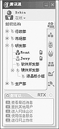 與其他應(yīng)用程序集成是EIM的發(fā)展趨勢(shì),也是企業(yè)現(xiàn)代辦公的一大需求。目前,騰訊通RTX已成功與國(guó)內(nèi)著名的金碟、用友、北京慧點(diǎn)等軟件廠商開展合作,使騰訊通RTX的整體功能進(jìn)一步提升,極大地方便了企業(yè)應(yīng)用。比如通過(guò)與金碟OA的集成,實(shí)現(xiàn)了企業(yè)級(jí)實(shí)時(shí)通信平臺(tái)與企業(yè)管理軟件和信息化解決方案的緊密結(jié)合,從而更好地滿足客戶需求。通過(guò)與用友ERP集成,降低了企業(yè)通信時(shí)間和費(fèi)用,提高了工作效率。