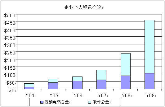我們相信:對(duì)以IP為基礎(chǔ)進(jìn)行的會(huì)議所產(chǎn)生的興趣會(huì)持續(xù)增強(qiáng)。隨著IP費(fèi)用的暴跌,向IP服務(wù)的遷移要比預(yù)測(cè)的慢很多。跡象表明:2~3年內(nèi),北美、歐洲和亞洲/太平洋地區(qū)將成為使用IP電話的領(lǐng)軍者。我們的預(yù)測(cè)IP遷移曲線與一年前沒有發(fā)生變化。實(shí)際上,作為一種選擇或一個(gè)標(biāo)準(zhǔn)功能,目前所推出的所有視頻系統(tǒng)均支持IP通信,也有許多視頻系統(tǒng)支持ISDN。我們認(rèn)為:目前所推出的系統(tǒng)中有50%以上適用于IP部署,而且這種趨勢(shì)將會(huì)進(jìn)一步發(fā)展,盡管受眾多遺產(chǎn)系統(tǒng)的影響,世界上所安裝的室內(nèi)系統(tǒng)仍舊是以ISDN為中心的。
