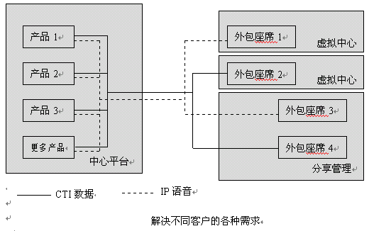 面向大客戶,為其提供業(yè)務(wù)開發(fā)、系統(tǒng)集成、硬件出租、場地出租、人員出租實現(xiàn)其客戶服務(wù)、客戶關(guān)懷、數(shù)據(jù)挖掘、電話銷售、商業(yè)智能等服務(wù)功能,大客戶通過呼叫中心外包,可以實現(xiàn)成本降低、風(fēng)險降低、建設(shè)周期縮短、并能實現(xiàn)服務(wù)增值,電信外包呼叫中心向企業(yè)提供贏得競爭的重要手段。
