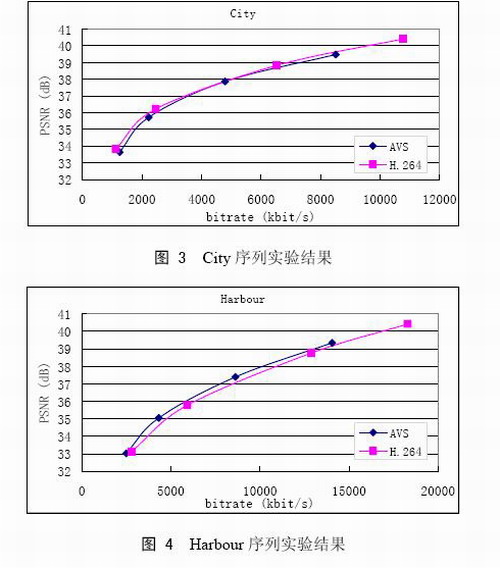 從上面的數(shù)據(jù)可以看出,在逐行編碼方面,AVS視頻標準的性能與H.264基本一致;在隔行編碼方面,由于AVS視頻標準目前只支持圖像級幀/場自適應編碼,平均有0.5dB的性能差距。