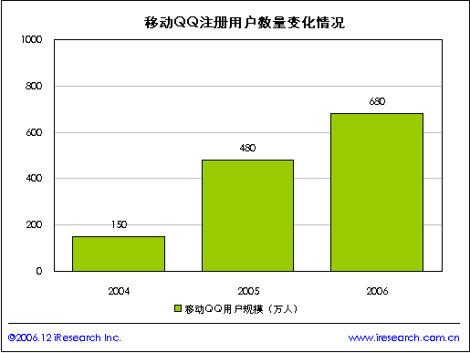 近兩年移動(dòng)QQ的市場(chǎng)規(guī)模迅速擴(kuò)大,iResearch研究結(jié)果顯示2006年移動(dòng)QQ用戶規(guī)模達(dá)到680萬人,移動(dòng)QQ所帶來的現(xiàn)金收入成為騰訊上市公司最重要的收入之一。移動(dòng)IM與互聯(lián)網(wǎng)IM最大的不同在于產(chǎn)業(yè)鏈移動(dòng)運(yùn)營(yíng)商的參與。艾瑞認(rèn)為互聯(lián)互通是移動(dòng)IM產(chǎn)業(yè)整合和發(fā)展必然趨勢(shì)。