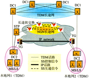圖1 NGN長途骨干網(wǎng)解決方案網(wǎng)絡(luò)模型