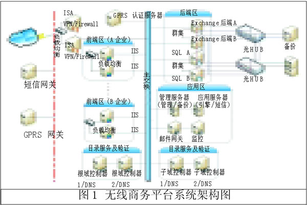 無線商務(wù)平臺以微軟活動目錄服務(wù)和Exchange服務(wù)器為平臺搭建,操作系統(tǒng)可以采用MS Windows 2003 Server,企業(yè)郵箱采用MS
