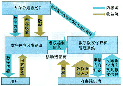 版權(quán)技術(shù)就是數(shù)字內(nèi)容版權(quán)管理(DRM)技術(shù),即給數(shù)字內(nèi)容一定的控制和標(biāo)識,避免其被非法使用、拷貝和盜版,為基于內(nèi)容的各種增值業(yè)務(wù)發(fā)展提供安全保證。目前,數(shù)字版權(quán)管理技術(shù)正由第一代向第二代發(fā)展。DRM1.0技術(shù)主要用于內(nèi)容的保護(hù),DRM2.0主要加強(qiáng)通信保護(hù)和密鑰保護(hù),這正是移動(dòng)網(wǎng)需要的。