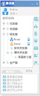 RTX的互聯(lián)功能:企業(yè)分支機(jī)構(gòu)互聯(lián);RTX企業(yè)互聯(lián),RTX用戶可以與其他RTX企業(yè)用戶互通;與普通QQ用戶互連。