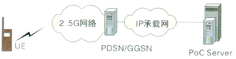 PS方案指直接在GPRS或CDMA 1X核心網(wǎng)絡(luò)上增加PoC服務(wù)器來(lái)實(shí)現(xiàn)PoC業(yè)務(wù);這種方案是國(guó)際標(biāo)準(zhǔn)發(fā)布之前的普遍方案。該方案結(jié)構(gòu)簡(jiǎn)單,成本低,PoC服務(wù)器直接與GGSN/PDSN相連,負(fù)責(zé)PoC業(yè)務(wù)的提供,其網(wǎng)絡(luò)結(jié)構(gòu)如圖3所示: