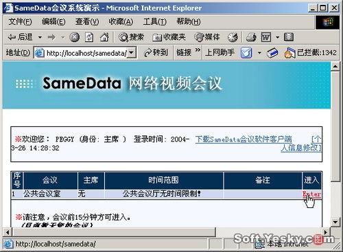 首先,與會(huì)會(huì)員需要打開“http://IP地址/samedata”并下載安裝登錄頁面中的“SamedataConference”,此軟件同樣具有傻瓜式的安裝向?qū)В恍枰宦穯螕簟跋乱徊健奔纯伞?br />