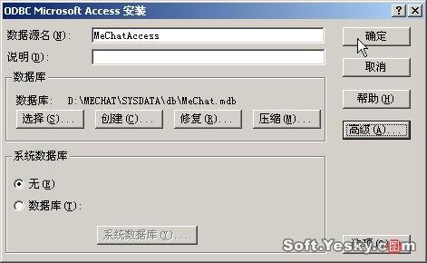 為使Mechat系統(tǒng)具有較高的運(yùn)行效率,我們將其添加數(shù)據(jù)庫支持,單擊“開始”/“設(shè)置”/“控制面板”,選擇“治理工具”/“數(shù)據(jù)源(ODBC)”,切換至“系統(tǒng)DSN”,單擊“添加”按鈕啟動(dòng)ODBC數(shù)據(jù)源添加向?qū),選擇“MicrosoftAccessDriver(*、mdb)”,然后在DSN屬性設(shè)置窗口設(shè)置數(shù)據(jù)源名稱為“MeChatAccess”,選擇數(shù)據(jù)庫文件為D:\MeChat\SysData\db目錄下的MeChat、mdb(如圖23)。設(shè)置完畢,單擊“確定”退出。