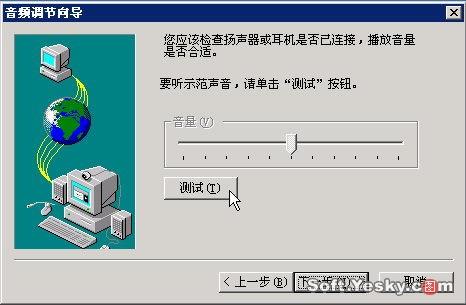 單擊“下一步”跳過Netmeeting服務(wù)器設(shè)置,此時(shí)向?qū)?huì)要求對(duì)計(jì)算機(jī)聲卡和麥克風(fēng)進(jìn)行測試,如圖5。