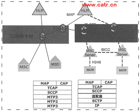 Server,彩鈴等)以IP鏈路接入IP STP(參見(jiàn)圖3)。