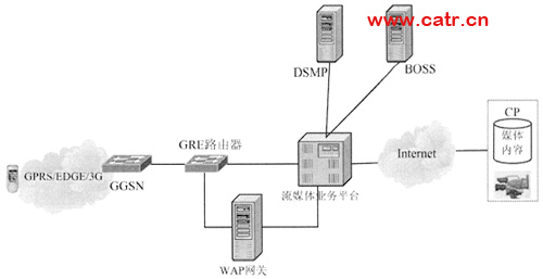 圖1 利用流媒體技術實現(xiàn)的手機電視業(yè)務網絡結構