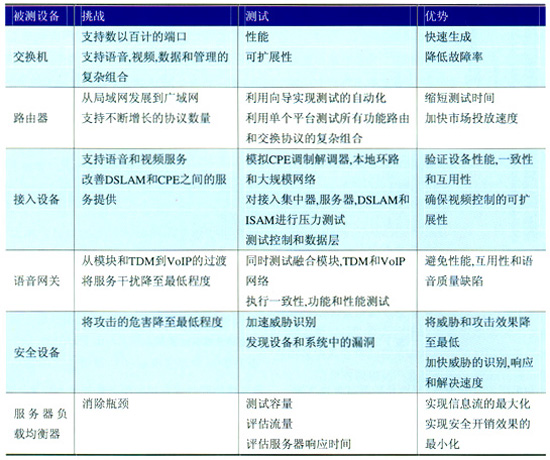 此外,思博倫還可以提供安全風(fēng)險管理解決方案。服務(wù)商和網(wǎng)絡(luò)設(shè)備制造商可以生成真實(shí)的流量,并將其引入網(wǎng)絡(luò)中,然后監(jiān)視各種“惡意代碼”對單個設(shè)備和總體網(wǎng)絡(luò)性能造成的影響,從而對網(wǎng)絡(luò)和設(shè)備中可能存在的漏洞進(jìn)行周全的測試。表1為思博倫基礎(chǔ)設(shè)施測試的挑戰(zhàn)和優(yōu)勢。