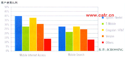 美國的移動搜索業(yè)務(wù)發(fā)展迅速,領(lǐng)先全球市場。根據(jù)美國市場調(diào)查公司的調(diào)查,美國移動用戶中,經(jīng)常使用移動搜索的用戶達(dá)到22%。美國主流運營商均已經(jīng)推出了移動搜索業(yè)務(wù),其中Sprint和合并后的Cingular/AT&T業(yè)務(wù)發(fā)展較好。