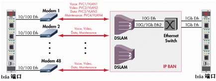 IXIA在實(shí)際的寬帶接入和匯聚設(shè)備測試中,特點(diǎn)和優(yōu)勢非常明顯,可以仿真真實(shí)用戶的行為,比如PPPoE接入方式上運(yùn)行HTTP和VoIP的流量,同時(shí)在Q-in-Q接口上運(yùn)行IPTV業(yè)務(wù),這種測試方式完全以家庭用戶為單位,非常真實(shí)地評估寬帶接入設(shè)備的性能。