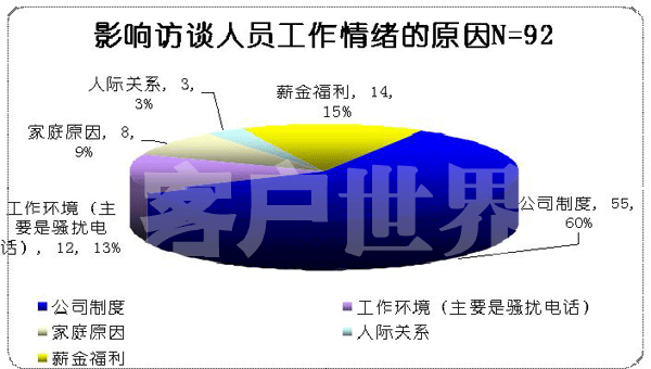 圖二:某通信集團一家呼叫中心2008年員工訪談——影響員工情緒原因