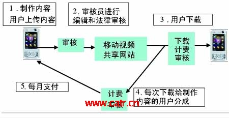 由于UGC(用戶產(chǎn)生內(nèi)容)類業(yè)務(wù)的產(chǎn)生,內(nèi)容類業(yè)務(wù)出現(xiàn)了創(chuàng)新的商業(yè)模式,根據(jù)內(nèi)容下載情況與內(nèi)容提供者之間進(jìn)行分成。和黃3公司就推出了這樣的盈利模式,我國移動(dòng)視頻共享網(wǎng)站也在向這個(gè)方向探索。