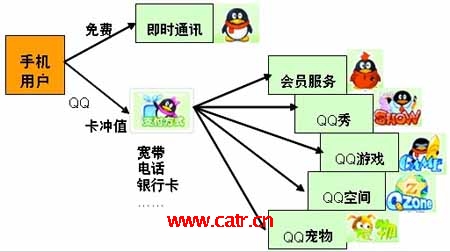 三、增值服務(wù)類商業(yè)模式。它承襲固定互聯(lián)網(wǎng)服務(wù)的商業(yè)模式,以終端用戶為付費(fèi)對象,通過移動(dòng)互聯(lián)網(wǎng)服務(wù)所衍生的增值服務(wù)進(jìn)行收費(fèi)。以手機(jī)騰訊為例,手機(jī)QQ服務(wù)免費(fèi),但對虛擬物品銷售,包括QQ秀、寵物等進(jìn)行收費(fèi),并已成為主要收入來源,它是互聯(lián)網(wǎng)QQ業(yè)務(wù)盈利模式的順延和擴(kuò)展。