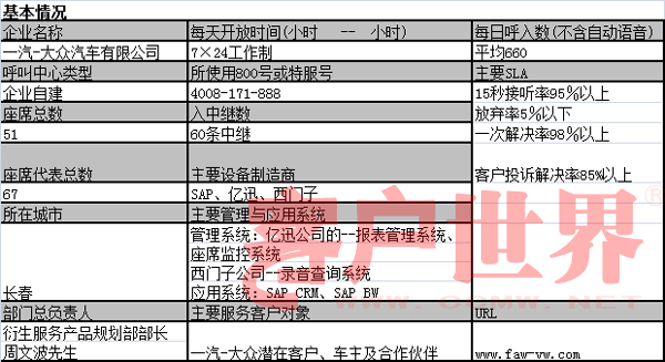 一汽-大眾汽車有限公司呼叫中心成立于1999年初,經(jīng)過九年Call Center 一路走來,有花有果,有香有澀,有酸有甜,有喜有淚,將主動營銷和主動服務(wù)意識深深感動著每一位客戶。