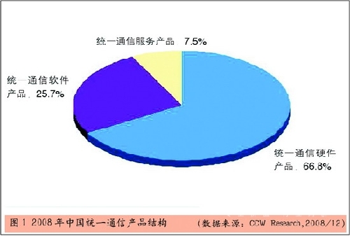 從產(chǎn)品結(jié)構(gòu)角度分析,雖然受硬件設(shè)備價(jià)格因素的影響,統(tǒng)一通信設(shè)備市場仍然是通信市場中最大份額的一部分,市場份額占到66.8%。而且隨著企業(yè)用戶對(duì)于統(tǒng)一通信理解能力的加深,統(tǒng)一通信軟件產(chǎn)品與統(tǒng)一通信服務(wù)越來越受到更多企業(yè)的認(rèn)同。與2007年相比,統(tǒng)一通信軟件和服務(wù)產(chǎn)品市場份額有一定比例的增加。2008年,統(tǒng)一通信軟件產(chǎn)品達(dá)到市場份額的25.7%,特別是統(tǒng)一通信服務(wù)產(chǎn)品,增長迅速,市場份額超過7.5%。