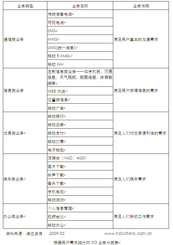 3G業(yè)務的發(fā)展需要3G產(chǎn)業(yè)多方努力,3G業(yè)務的利益關聯(lián)方主要有標準制定、運營商、服務提供商、內(nèi)容提供商、終端廠商及用戶等環(huán)節(jié)。諾達咨詢最新研究報告《3G發(fā)展報告系列——全球3G業(yè)務與運營市場發(fā)展研究報告2009》從技術、運營及市場需求等方面對3G現(xiàn)有和潛在業(yè)務進行多角度審視。