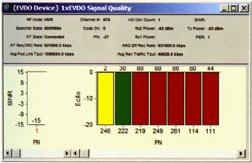 測試中,不僅可以得到各導(dǎo)頻級的信息、SINR、反向鏈路性能、功率控制、信令消息及RLP層吞吐量信息,還可以通過安捷倫接收機(jī)進(jìn)行獨(dú)立的射頻環(huán)境測試,如導(dǎo)頻掃描、頻譜測試和連續(xù)波測試,通過接收機(jī)的這些測試數(shù)據(jù),查找網(wǎng)絡(luò)中存在的導(dǎo)頻污染、鄰區(qū)丟失、基站始終、孤島效應(yīng)、外部干擾等問題,從多方面對出現(xiàn)的問題進(jìn)行定位分析,極大的提高了測試的效率。