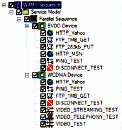安捷倫針對無線網(wǎng)絡(luò)數(shù)據(jù)業(yè)務(wù)的特性,推出了新的測試工具——WAMS(WirelessApplicationMeasurementSoftware)。它是安捷倫E6474A路測系統(tǒng)平臺上的一個選件。它支持所有的無線通信技術(shù)的數(shù)據(jù)業(yè)務(wù)測試,如GPRS、EDGE、CDMA 1xRTT、EvDo、WCDMA和HSDPA等;測試的項(xiàng)目包括HTTP、FTP、EMAIL、SMS、MMS、視頻電話和流媒體測試等;還能夠同時連接多個不同技術(shù)的測試終端進(jìn)行數(shù)據(jù)業(yè)務(wù)的并發(fā)測試,以實(shí)現(xiàn)數(shù)據(jù)業(yè)務(wù)的多網(wǎng)絡(luò)評估測試。
