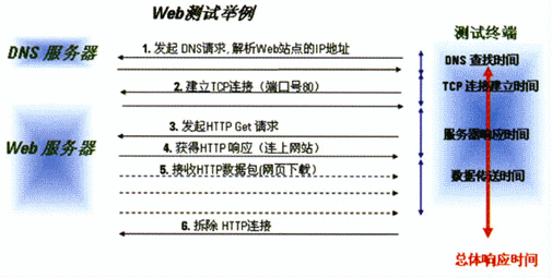 在用戶對無線數(shù)據(jù)業(yè)務(wù)的訪問過程中,通常會包含多個階段(業(yè)務(wù)處理過程)。如當(dāng)用戶在使用手機(jī)要瀏覽網(wǎng)頁的時候,先輸入網(wǎng)頁的地址,然后按手機(jī)上的“訪問”按鈕,一段時間后手機(jī)的屏幕上就會顯示出要瀏覽的網(wǎng)頁頁面?此坪唵蔚倪^程,其實(shí)這里面包含了以下幾個步驟:DNS查找時間、TCP連接時間、服務(wù)器響應(yīng)時間和數(shù)據(jù)下載時間。在這中間,只要任何一步出了問題,如DNS解析時間過長、TCP連接建立時間過長、應(yīng)用服務(wù)器負(fù)載過重、網(wǎng)絡(luò)可用信道資源少而造成數(shù)據(jù)下載慢,都可能會造成頁面下載失敗。因此,為了能準(zhǔn)確地定位造成用戶對Web服務(wù)質(zhì)量感知度差的原因,我們就需要得到各階段的性能參數(shù),這樣才能快速地進(jìn)行相關(guān)服務(wù)器和網(wǎng)絡(luò)的故障查找并解決問題。