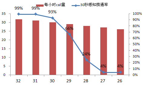 呼叫中心指標體系中最為基礎(chǔ)最為關(guān)鍵的就是接通率指標了,下面,本文重點將呼叫中心部分與接通率相關(guān)的運營數(shù)據(jù)轉(zhuǎn)化成圖表,用erlang-C(國際標準的呼叫中心管理軟件)的計算數(shù)據(jù)表示管理和資源投入對于呼叫中心生產(chǎn)的巨大影響。
