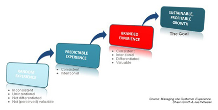 目前多數(shù)電信企業(yè)提供的都是‘隨機(jī)’體驗(yàn)。隨機(jī)體驗(yàn)是各種不連續(xù)端到端體驗(yàn)的集合體。它發(fā)生在整體客戶體驗(yàn)未得到恰當(dāng)管理或企業(yè)漠視客戶與員工的情況下。最終這將導(dǎo)致品牌走向墮落以及丟失有價(jià)值的客戶、利潤(rùn)和企業(yè)價(jià)值。如果企業(yè)不想如上所述這樣慘淡收?qǐng),那么他們至少要做到?chuàng)造和交付一種可預(yù)測(cè)的體驗(yàn)——連續(xù)且有意向的(見圖1)。