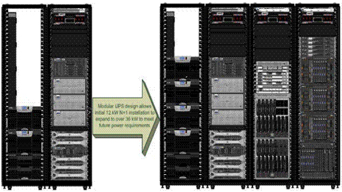 模塊化UPS設計允許最初的12kW N+1架構設備擴展至36kW以上,以滿足未來的電源要求。