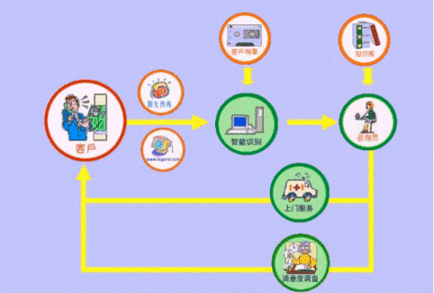 售后技術(shù)咨詢(xún)及報(bào)修:用戶(hù)購(gòu)機(jī)之后,同樣可以通過(guò)電話(huà)或者網(wǎng)絡(luò)進(jìn)入呼叫中心系統(tǒng),系統(tǒng)會(huì)通過(guò)用戶(hù)檔案庫(kù)得到用戶(hù)的詳細(xì)信息并為他尋找合適的咨詢(xún)員,咨詢(xún)員會(huì)依據(jù)共享的知識(shí)庫(kù)為用戶(hù)解決問(wèn)題,如果用戶(hù)的機(jī)器需要上門(mén)服務(wù)。咨詢(xún)員會(huì)通過(guò)網(wǎng)絡(luò)查詢(xún)?nèi)珖?guó)服務(wù)渠道的工程師和備件情況,并安排工程師迅速上門(mén)為用戶(hù)服務(wù)。維修完成一天后,系統(tǒng)會(huì)自動(dòng)產(chǎn)生電話(huà)呼出,由咨詢(xún)員直接詢(xún)問(wèn)用戶(hù)對(duì)服務(wù)過(guò)程的滿(mǎn)意程度,以便改進(jìn)我們的工作。