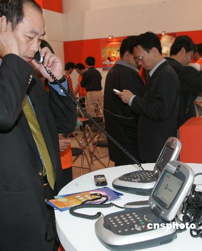 圖為展會(huì)上展出的一款便攜式小型可視電話機(jī),