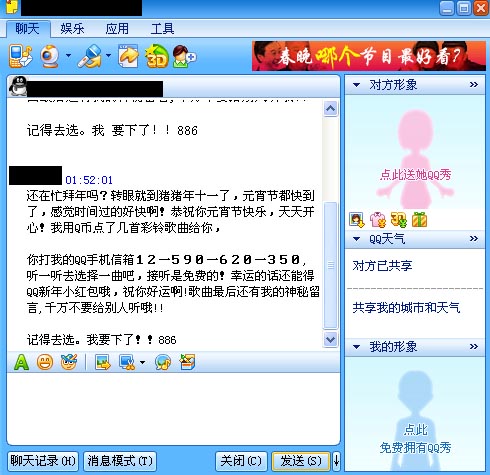 3月4日北京報道 如果你收到QQ好友發(fā)過來的撥打12590點播元宵節(jié)祝福的信息,千萬不要信以為真,這僅是一些不良SP廠商斂財?shù)囊环N手段。