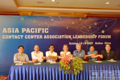 2007年10月18-19日,亞太呼叫中心領(lǐng)導(dǎo)人會議在中國?谂e行。中國大陸CNCCA、香港HKCCA、臺灣TCCDA以及澳大利亞ATA和CCMA、新加坡CCAS、印度尼西亞ICCA等共7個亞太地區(qū)呼叫中心協(xié)會的領(lǐng)導(dǎo)人參與了會議研討。各協(xié)會一致決定發(fā)起成立“亞太客服與呼叫中心聯(lián)盟”(Asia Pacific Contact Center Association Leaders),就涉及亞太區(qū)域的呼叫中心協(xié)會間合作和溝通事務(wù)發(fā)揮領(lǐng)導(dǎo)作用。亞太呼叫中心協(xié)會領(lǐng)導(dǎo)人簽署合作備忘錄