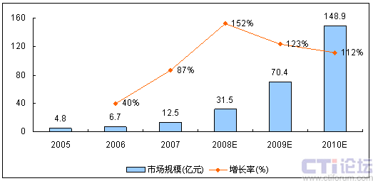馳昂咨詢(Sinotes)發(fā)布的《2007-2008年中國移動增值業(yè)務市場研究年度報告》顯示,截止至2007年底,中國移動即時通信(IM)市場規(guī)模已經達到12.5億元。而隨著3G時代的來臨,在電信運營商的積極推動下,國內移動IM市場必將步入快速增長期,預計未來三年增長率都將在100%以上。